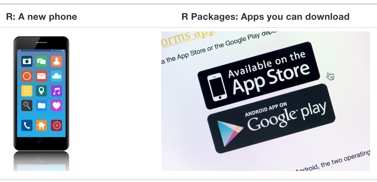 A good analogy for R packages is that they