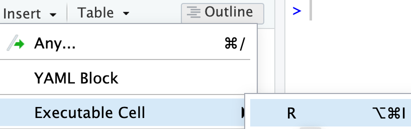 3 options to create a code chunk