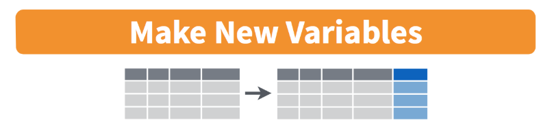 mutate to calculate a new variable based on other variables (3/3)Figure examining the newly created variables using mutate: