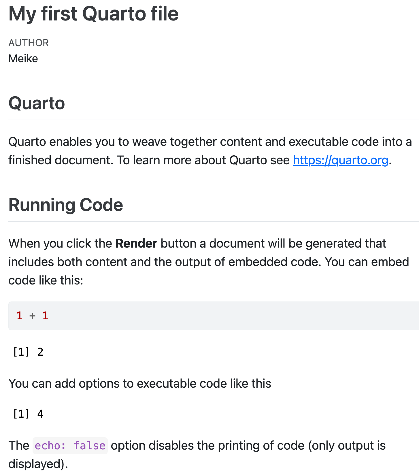 .qmd file = Code + text \(\to\) html.qmd files contain code + markdown syntax which can be “rendered” to other formats (html, pdf, Word, etc)