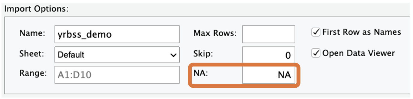 NA in the “NA:” box, andImport button on the bottom right of the pop-up window.