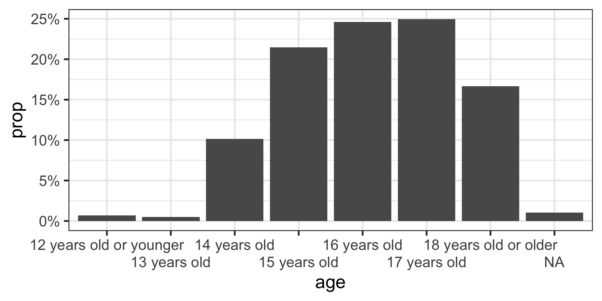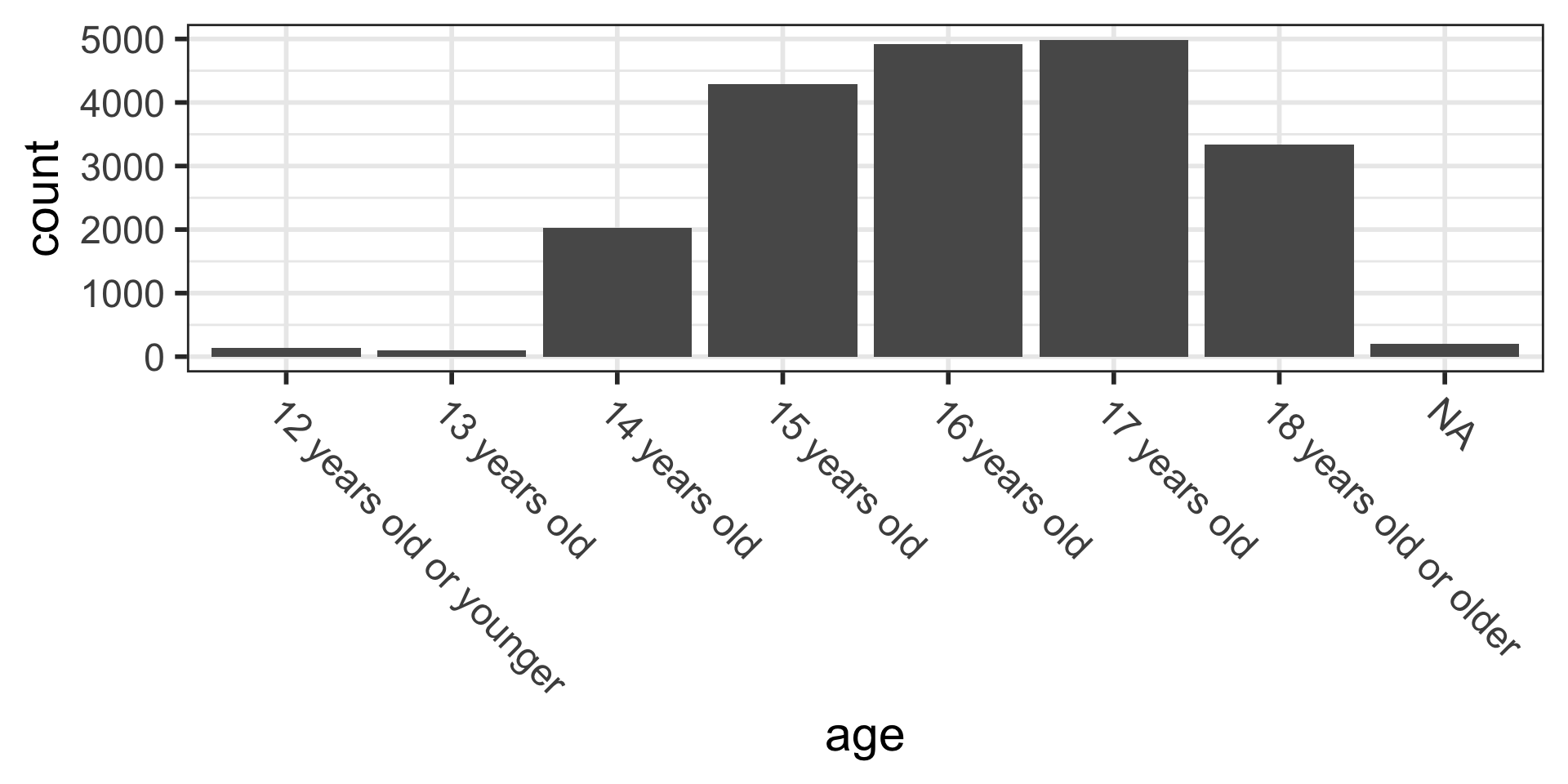 $ age <chr> "15 years old", "17 years old", "18 years old or older", "15 …