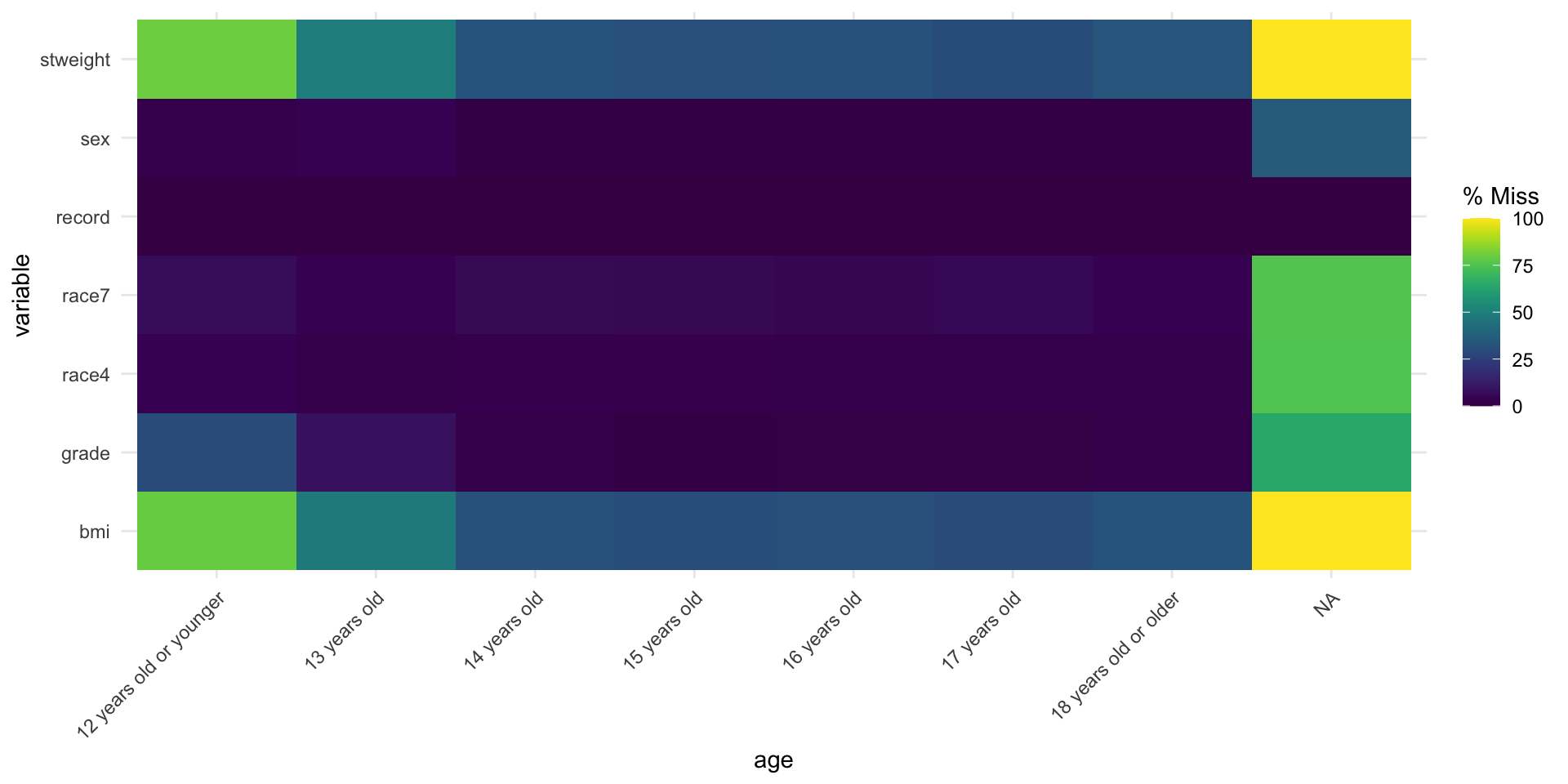 record age sex grade race4 race7 bmi stweight age_fac